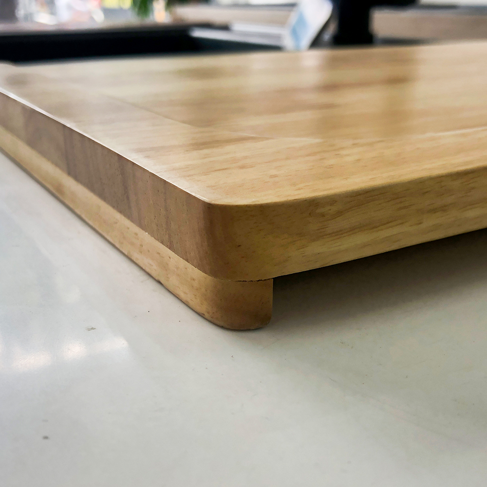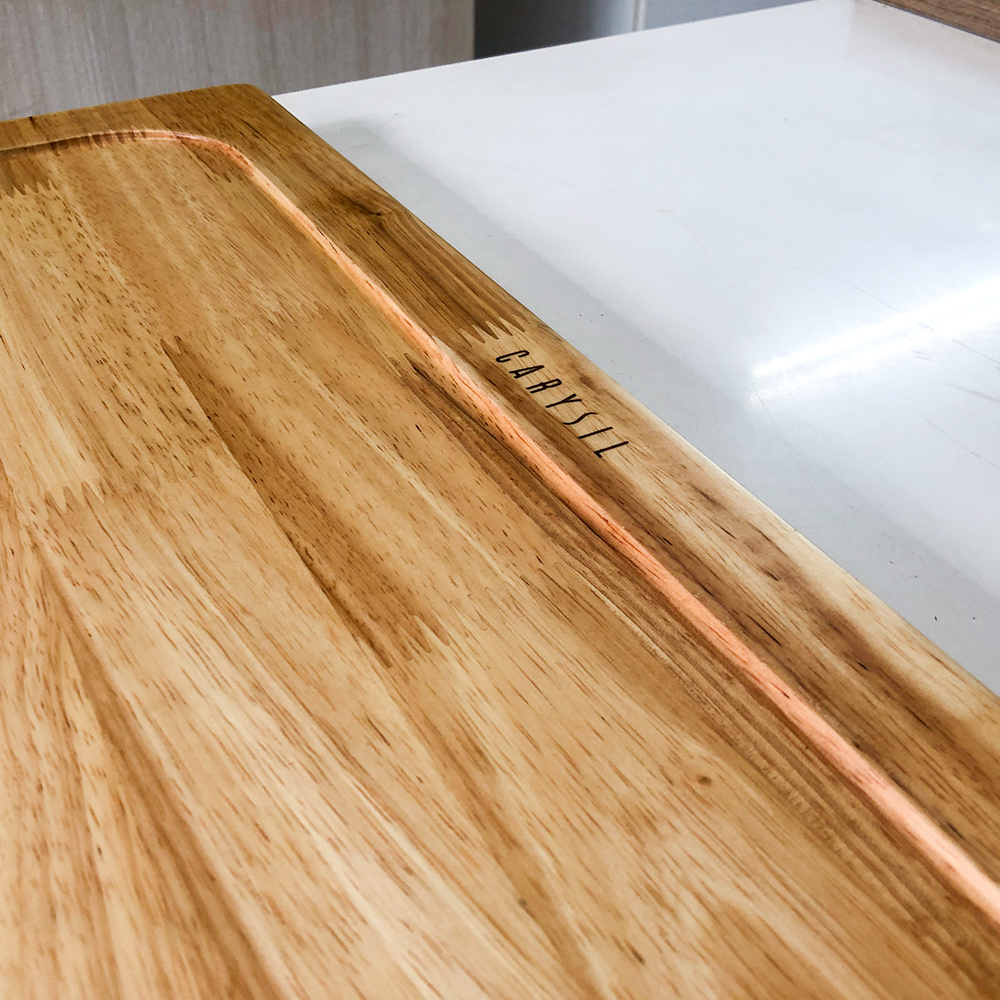 Thiết kế mặt thớt gỗ Carysil có bo tròn gờ 5mm giúp cho mặt bếp luôn khô thoáng và bạn có thể kiểm soát hết công việc sơ chế của mình.